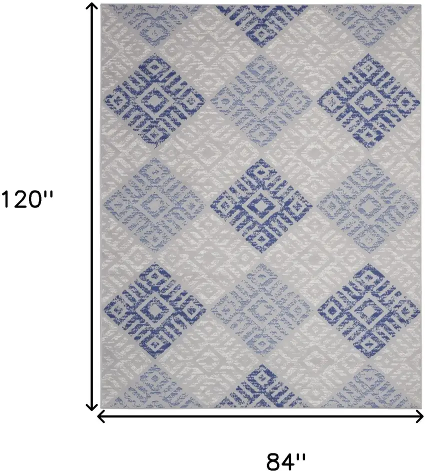 Beige Blue and Gray Geometric Distressed Non Skid Area Rug