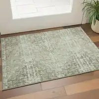 Beige Blue And Ivory Abstract Washable Area Rug With UV Protection