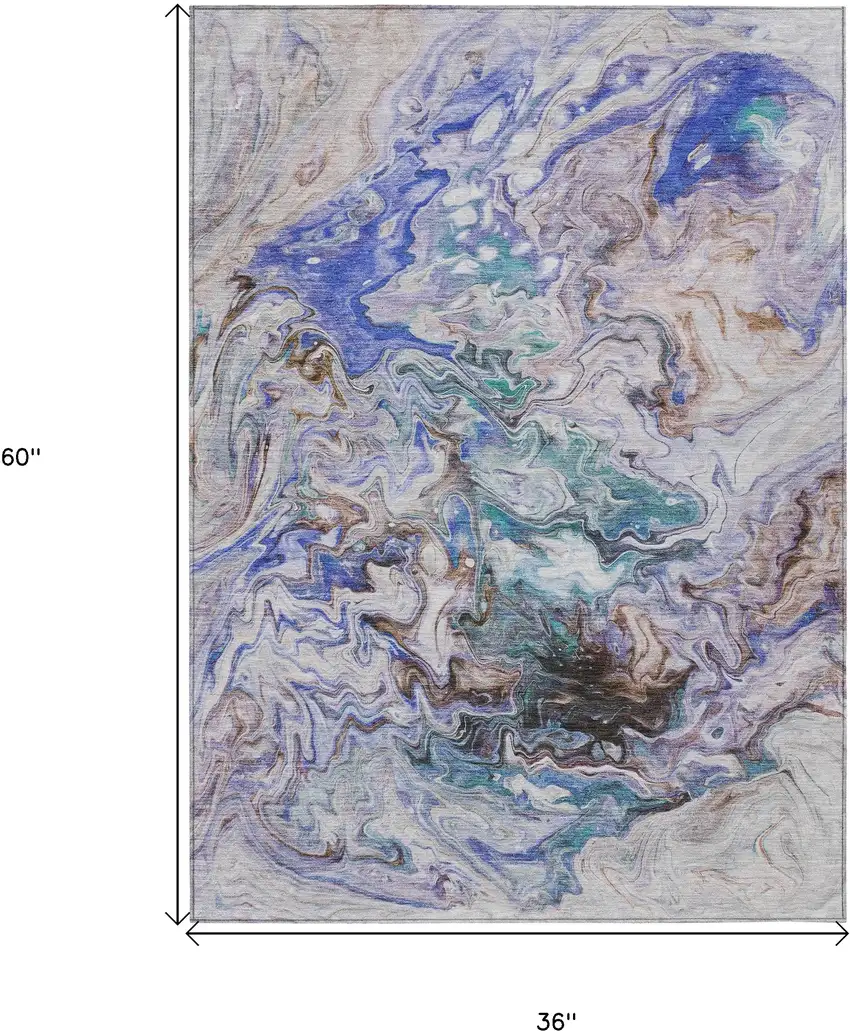 Beige Blue And Taupe Abstract Washable Indoor Outdoor Area Rug