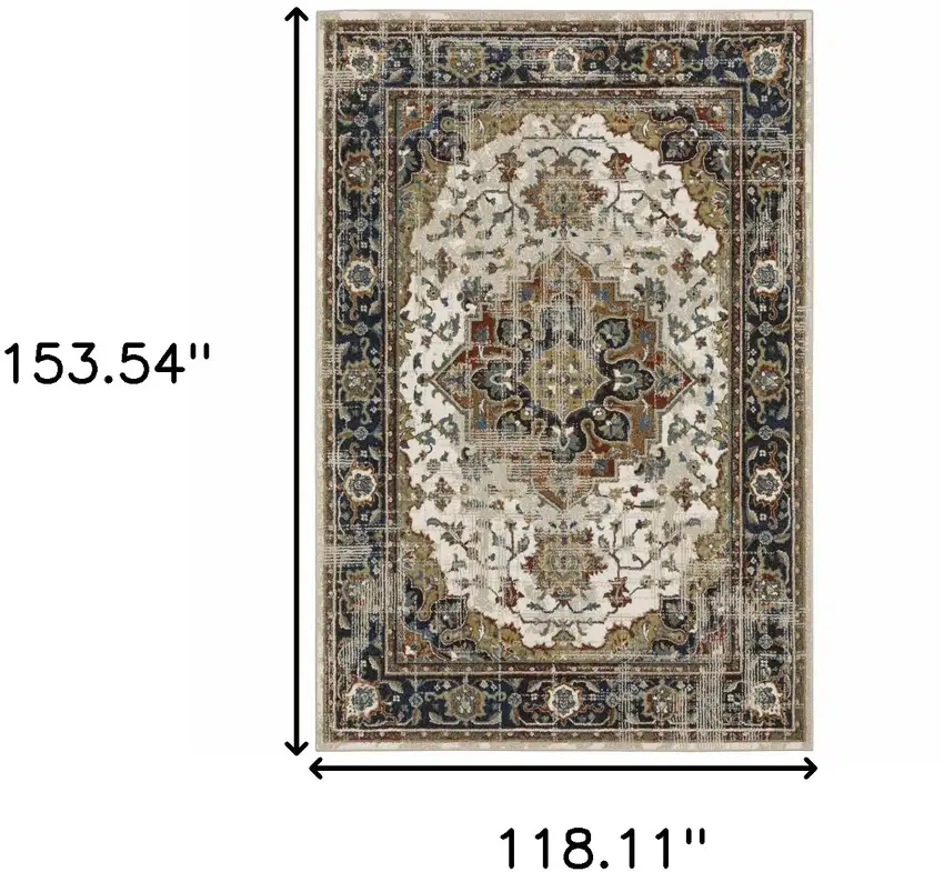 Experience an infusion of traditional oriental charm in your living space with this power-loomed rug. Its intricate patterns and delightful blend of beige, blue, green, rust, and grey bring warmth and sophistication.