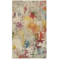 Beige Brown And Blue Abstract Area Rug