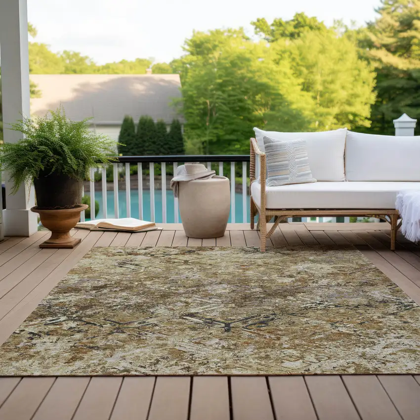 Add some artistry to your room with this 5-foot x 8-foot beige brown and copper geometric washable indoor outdoor area rug. This rectangle shaped rug features a geometric design that will work well both indoors or out. A classic shape marries with good looking design for your living room, hall, bedroom, porch, patio, or poolside. Ideal for outdoor spaces or high traffic areas with kids and pets, this rug is made from heavy duty polyester that is stain resistant to help repel water, dirt, and stains. Versatile in use, durable, and easy to maintain, this rug is an ideal solution to add a decorative and inviting touch to your indoor or outdoor space. 60-inch h x 90-inch w x 0.19-inch d.