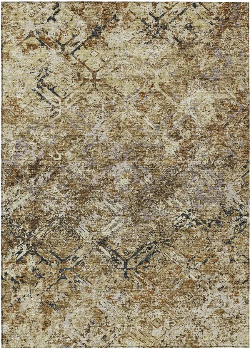 Add some artistry to your room with this 10-foot x 14-foot beige brown and copper geometric washable indoor outdoor area rug. This rectangle shaped rug features a geometric design that will work well both indoors or out. A classic shape marries with good looking design for your living room, hall, bedroom, porch, patio, or poolside. Ideal for outdoor spaces or high traffic areas with kids and pets, this rug is made from heavy duty polyester that is stain resistant to help repel water, dirt, and stains. Makes a great way to dress up your patio, porch, or poolside, but also works well as a durable and easy to maintain option in the kitchen, family room, or mudroom. 120-inch h x 168-inch w x 0.19-inch d.