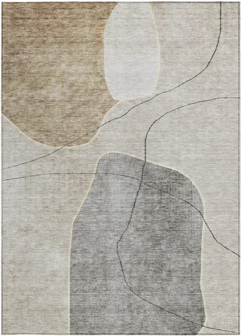 Set an inviting tone in your space with this 5-foot x 8-foot beige brown and taupe abstract washable indoor outdoor area rug. This rectangle shaped rug features a abstract design that will work well both indoors or out. A classic shape marries with good looking design for your living room, hall, bedroom, porch, patio, or poolside. Ideal for outdoor spaces or high traffic areas with kids and pets, this rug is made from heavy duty polyester that is stain resistant to help repel water, dirt, and stains. Versatile in use, durable, and easy to maintain, this rug is an ideal solution to add a decorative and inviting touch to your indoor or outdoor space. 60-inch h x 90-inch w x 0.19-inch d.