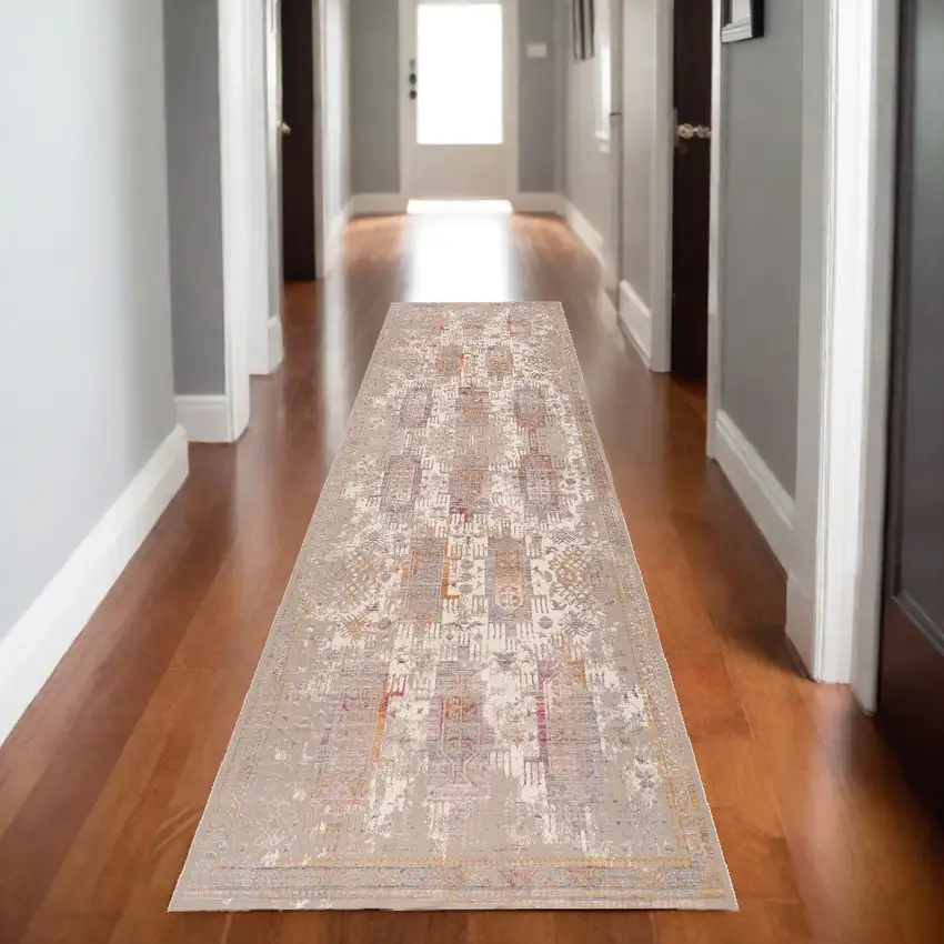 The Beige Faded Tribal Motifs Runner Rug's versatility is unmatched. Whether you want to create a focal point in your hallway, add a cozy touch to your bedroom, or tie together your living room decor, this rug can do it all. Its elongated shape makes it perfect for narrow spaces, while the captivating design adds visual interest and depth. You can effortlessly elevate your interior by placing this rug in different areas of your home, instantly transforming them into stylish and inviting spaces.