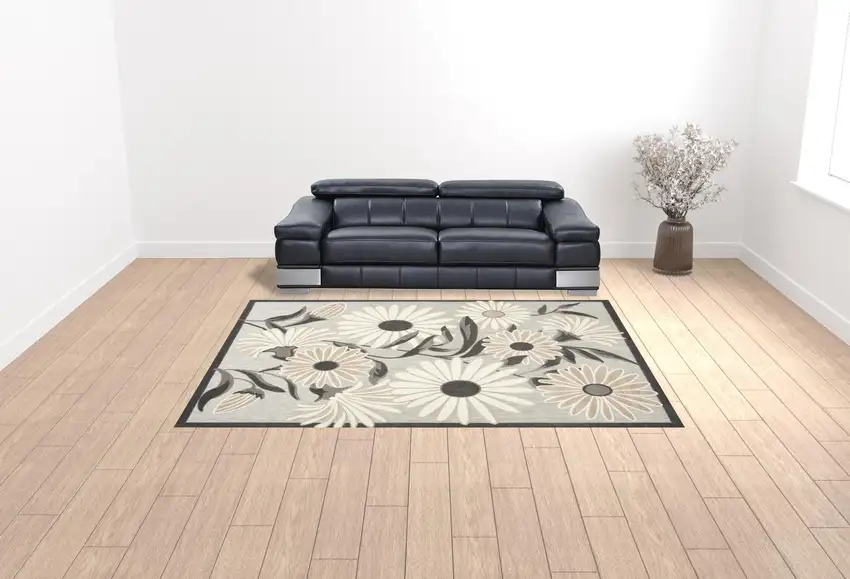 Beige Floral Stain Resistant Non Skid Area Rug
