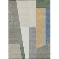 Beige Gold And Gray Abstract Washable Indoor Outdoor Area Rug