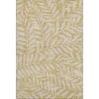 Beige Gold And Gray Botanical Leaves Washable Area Rug With UV Protection