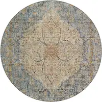 Beige Gold And Gray Medallion Washable Indoor Outdoor Area Rug