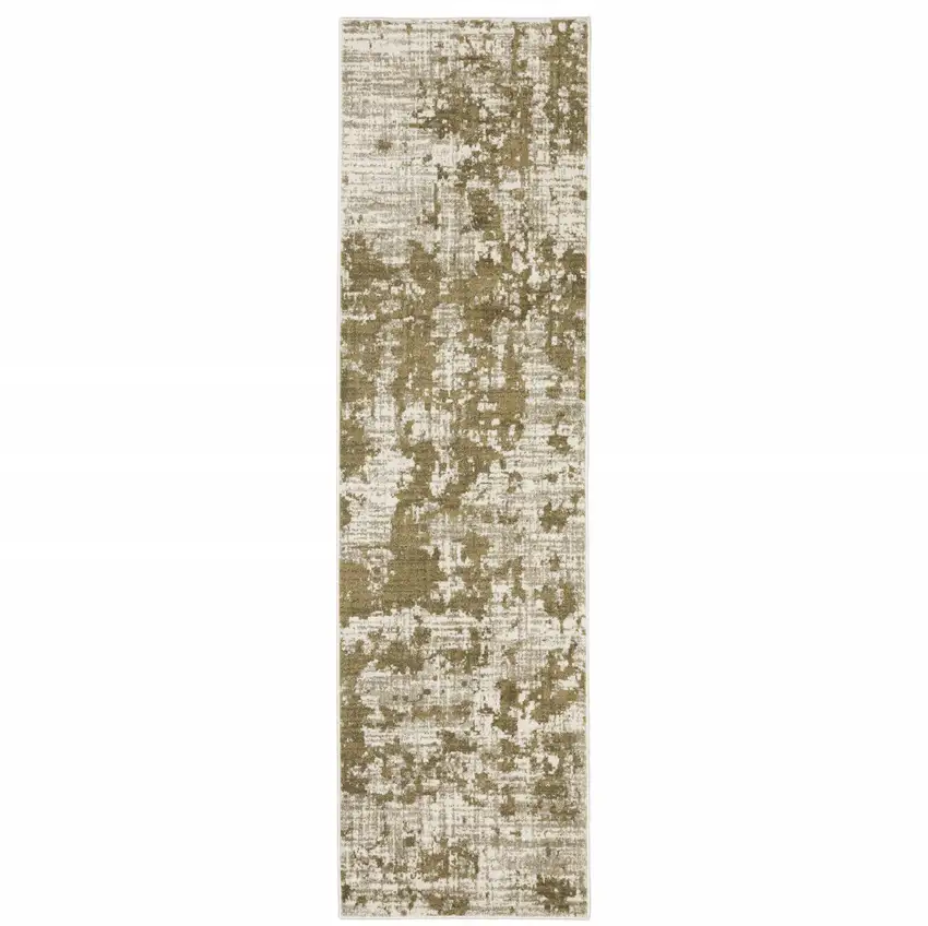 Beige Gold And Grey Abstract Power Loom Stain Resistant Runner Rug