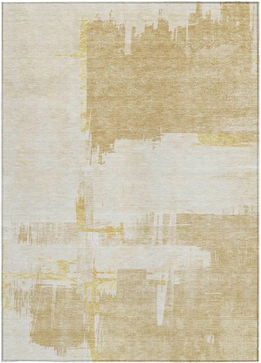 Beige Gold And Tan Abstract Washable Indoor Outdoor Area Rug