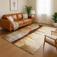 Elevate the aesthetic appeal of your living room, bedroom, or dining area with this carefully curated rug. The captivating combination of beige, gold, black, grey, tan, teal, and rust hues forms an eye-catching geometric pattern that beautifully complements a variety of interior styles.