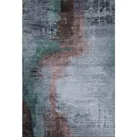 Beige Grey Gold And Green Geometric Power Loom Stain Resistant Area Rug