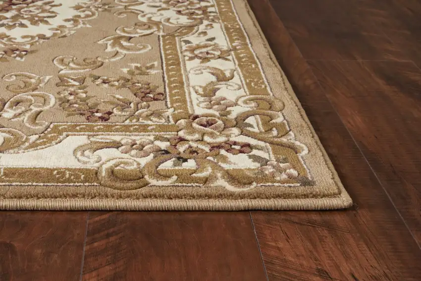 Beige Ivory Machine Woven Hand Carved Floral Medallion Indoor Area Rug