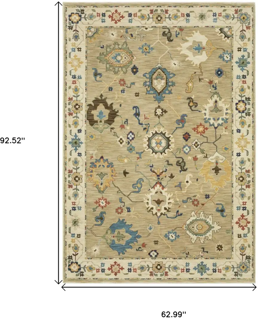 Add great coloration and comfortable texture to your space with this 5-foot x 8-foot beige oriental power loom area rug with fringe. This rectangle shaped rug features a oriental design in beige to give it visual interest. A classic shape marries with good looking design for your space the coloring of this rug adds a delightfully neutral tone to your home and will easily match with most any decor. Ideal for spaces with kids and pets, this rug is stain resistant to help repel stains and spilled liquids. Tassel ends bring a timeless and fashionable look to your interior. Place this area rug against a hardwood or tile floor and it will enliven your living space with style and sophistication. 62.99-inch H x 92.52-inch W x 0.32-inch D