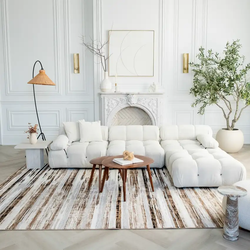 When it comes to quality, the Beige Rustic Strokes Area Rug does not compromise. Made from top-grade materials, this rug offers exceptional durability, ensuring that it will withstand the test of time and remain a beloved part of your home for years to come. The high-quality construction guarantees that it can endure high foot traffic areas, making it perfect for both busy households and commercial spaces.