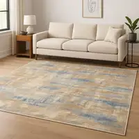 Beige Salmon And Blue Abstract Washable Area Rug With UV Protection