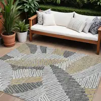 Beige Tan And Gray Floral Washable Indoor Outdoor Area Rug