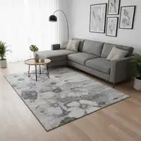 Beige Tan And Ivory Abstract Washable Area Rug With UV Protection