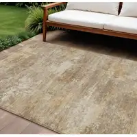 Beige Tan And Ivory Floral Washable Indoor Outdoor Area Rug