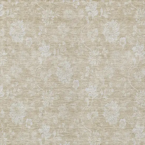 Beige Tan And Ivory Floral Washable Indoor Outdoor Area Rug