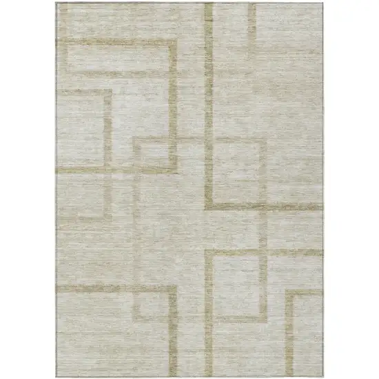 Beige Tan And Taupe Geometric Washable Indoor Outdoor Area Rug