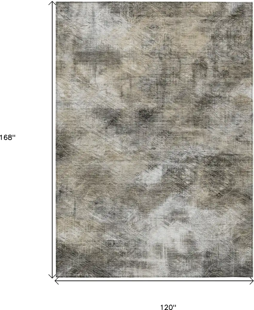 This 10-foot x 14-foot beige taupe and gray abstract washable indoor outdoor area rug, is a great way to add warmth to a room. This rectangle shaped rug features a abstract design that will work well both indoors or out. A classic shape marries with good looking design for your living room, hall, bedroom, porch, patio, or poolside. Ideal for outdoor spaces or high traffic areas with kids and pets, this rug is made from heavy duty polyester that is stain resistant to help repel water, dirt, and stains. Versatile in use, durable, and easy to maintain, this rug is an ideal solution to add a decorative and inviting touch to your indoor or outdoor space. 120-inch h x 168-inch w x 0.19-inch d.