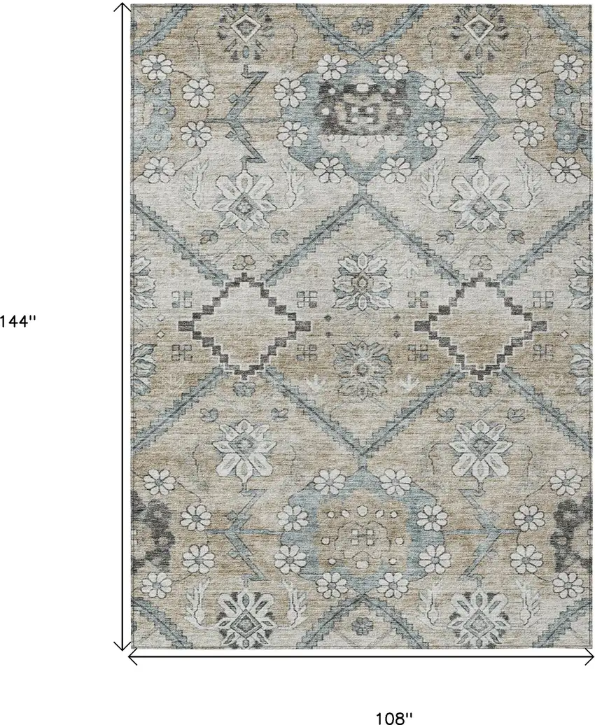 Add great coloration and comfortable texture to your space with this 9-foot x 12-foot beige taupe and tan floral washable indoor outdoor area rug. This rectangle shaped rug features a floral design that will work well both indoors or out. A classic shape marries with good looking design for your living room, hall, bedroom, porch, patio, or poolside. Ideal for outdoor spaces or high traffic areas with kids and pets, this rug is made from heavy duty polyester that is stain resistant to help repel water, dirt, and stains. Makes a great way to dress up your patio, porch, or poolside, but also works well as a durable and easy to maintain option in the kitchen, family room, or mudroom. 108-inch h x 144-inch w x 0.19-inch d.