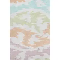 Beige Teal And Brown Geometric Washable Area Rug With UV Protection
