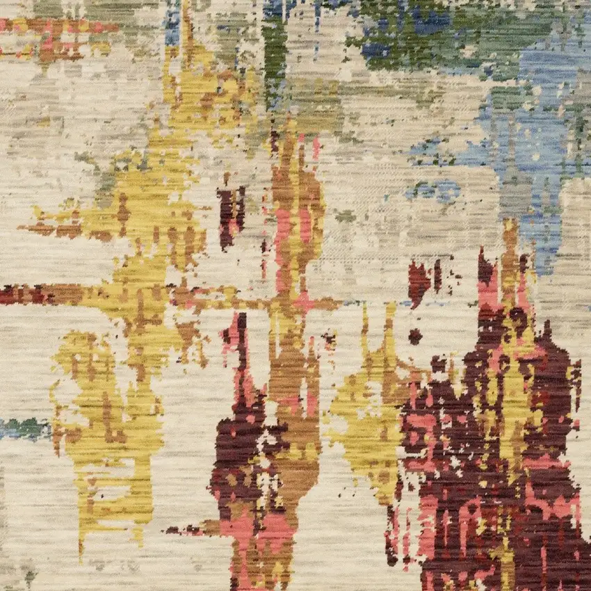 Beige Yellow And Salmon Abstract Area Rug With Fringe