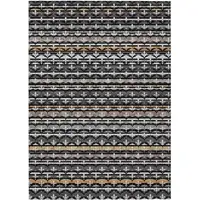 Black And Brown Patchwork Washable Indoor Outdoor Area Rug