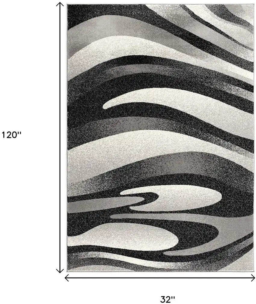Bring an artistic flair to your hallway with this rug that features an abstract marble pattern design. Its black and gray hues perfectly blend in with a variety of color schemes.