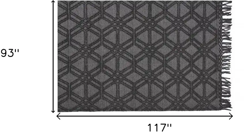Transform your living space into a haven of comfort and style with the Black and Gray Wool Geometric Hand-Woven Area Rug with Fringe. Crafted with care and designed to impress, this rug is the perfect addition to any room, whether it be your cozy living room or your elegant bedroom.