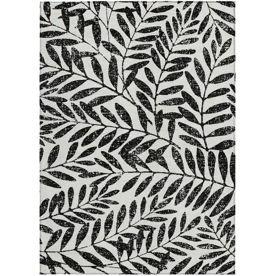 Black And Ivory Floral Washable Indoor Outdoor Area Rug