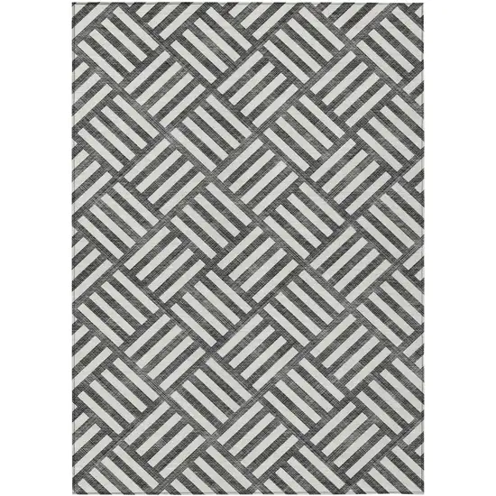 Black And Ivory Geometric Washable Indoor Outdoor Area Rug