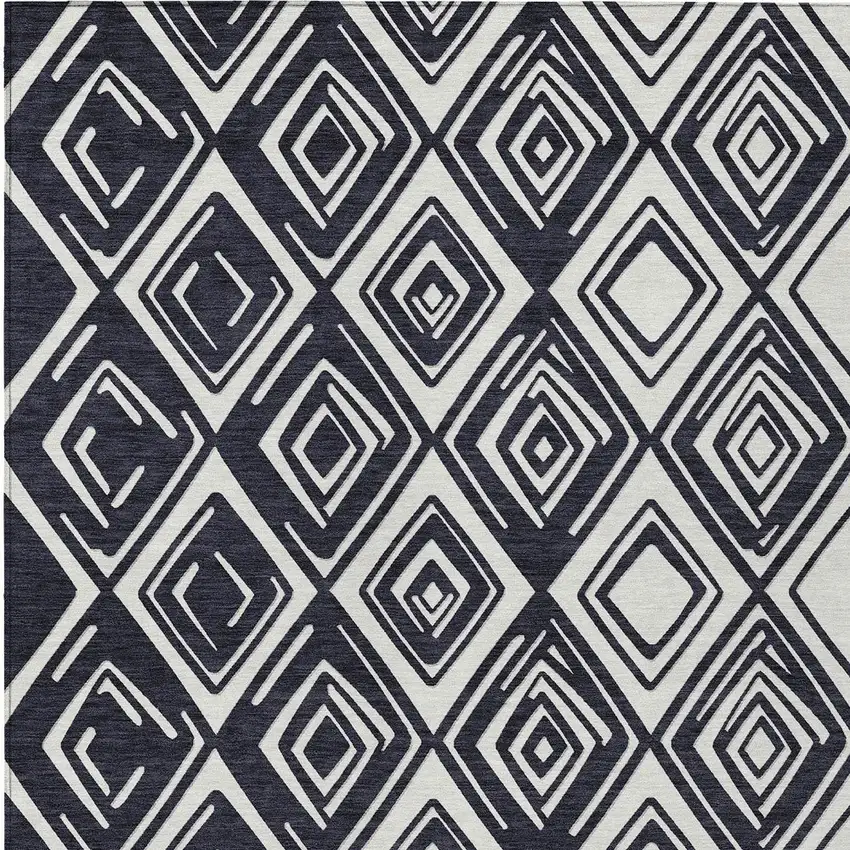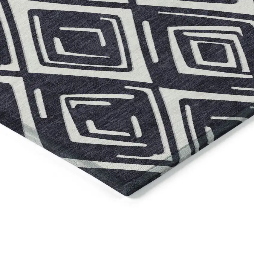 Black And Ivory Geometric Washable Indoor Outdoor Area Rug