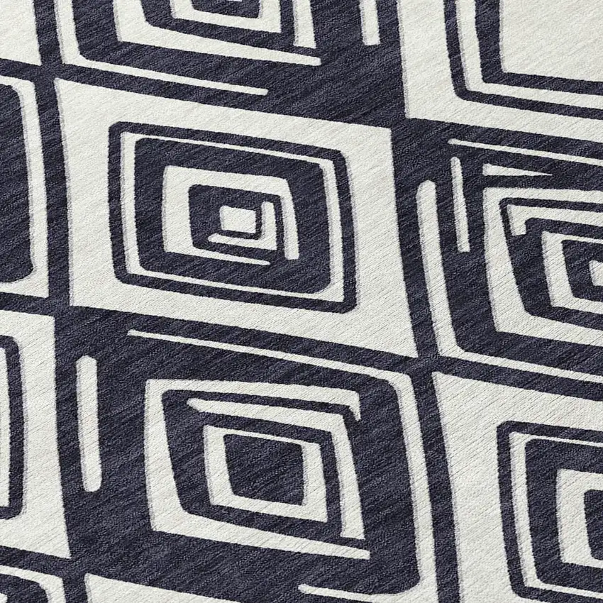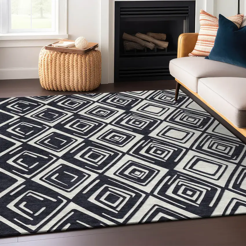 Black And Ivory Geometric Washable Indoor Outdoor Area Rug