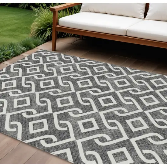 Black And Ivory Geometric Washable Indoor Outdoor Area Rug