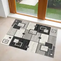 Black And Ivory Medallion Washable Area Rug With UV Protection