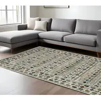Set an inviting tone in your space with this 5-foot x 8-foot ivory and black oriental area rug. Ideal for spaces with kids and pets, this rug is stain resistant to help repel dirt and spilled liquids. Built to last, this rug crafted from polypropylene fibers is known for its durability and long lasting appeal. Rugs are a great way to showcase your style, hide imperfections, warm your home and reduce noise. This larger sized, traditional styled rug is ready to create a focal point or statement piece in your room. 62.99-inch h x 92.52-inch w x 0.43-inch d.