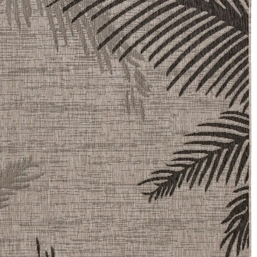Add some artistry to your room with this 3-foot x 5-foot black and taupe palm leaf stain resistant indoor outdoor area rug. This rectangle shaped rug features a palm leaf design in black and taupe to give it visual interest. A classic shape marries with good looking design for your space ideal for spaces with kids and pets, this rug is stain resistant to help repel stains and spilled liquids. Place this area rug against a hardwood or tile floor and it will enliven your living space with style and sophistication. 36-inch H x 60-inch W x 0.35-inch D