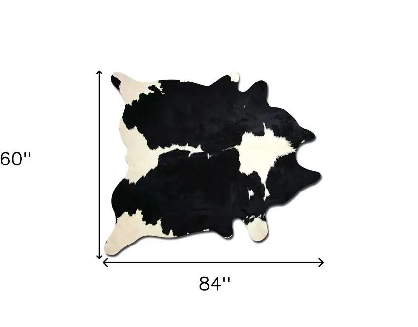 This cowhide rug, featuring a distinct black and white design, offers a perfect blend of rustic charm and modern class. Its captivating pattern will make it a centerpiece in any room.