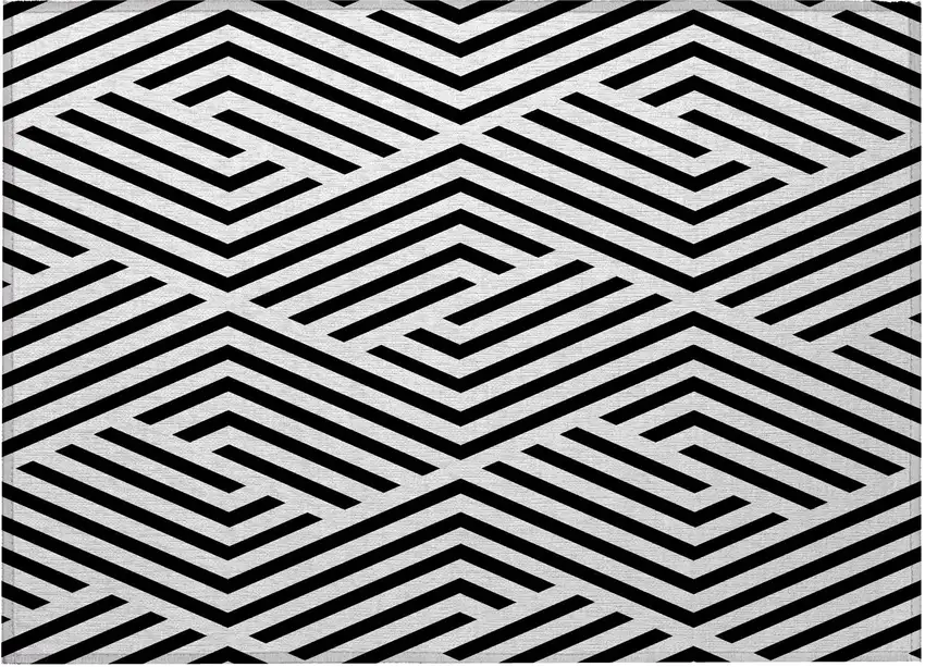 Black and White Geometric Washable Non Skid Indoor Outdoor Area Rug