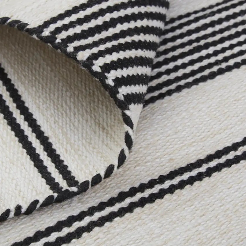 Black And White Striped Dhurrie Hand Woven Stain Resistant Area Rug