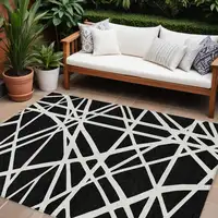 Black and White Striped Washable Non Skid Indoor Outdoor Area Rug