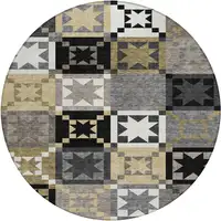 Black Beige And Gold Oriental Washable Indoor Outdoor Area Rug