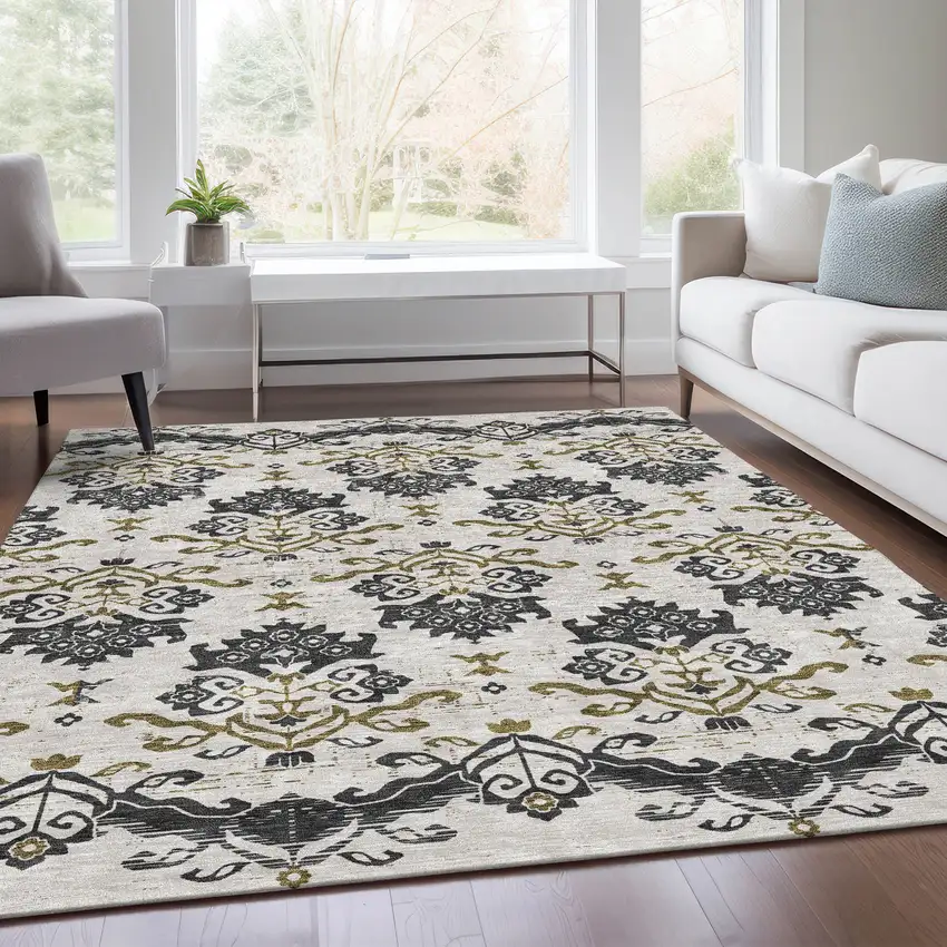 Add great coloration and comfortable texture to your space with this 10-foot x 14-foot black beige and gold oriental washable indoor outdoor area rug. This rectangle shaped rug features a oriental design that will work well both indoors or out. A classic shape marries with good looking design for your living room, hall, bedroom, porch, patio, or poolside. The coloration of this rug infuses an updated and modern vibe into your space. Ideal for outdoor spaces or high traffic areas with kids and pets, this rug is made from heavy duty polyester that is stain resistant to help repel water, dirt, and stains. Makes a great way to dress up your patio, porch, or poolside, but also works well as a durable and easy to maintain option in the kitchen, family room, or mudroom. 120-inch h x 168-inch w x 0.19-inch d.