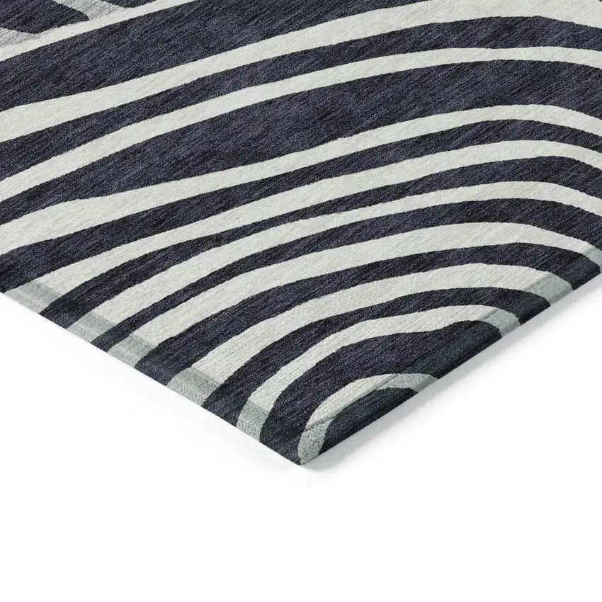 Black Charcoal And Gray Abstract Washable Indoor Outdoor Area Rug