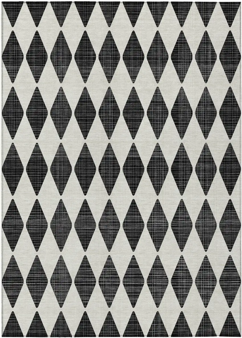 Set an inviting tone in your space with this 5-foot x 8-foot black geometric washable non skid indoor outdoor area rug. This rectangle shaped rug features a geometric design that will work well both indoors or out. A classic shape marries with good looking design for your living room, hall, bedroom, porch, patio, or poolside. The coloration of this rug infuses an updated and modern vibe into your space. Ideal for outdoor spaces or high traffic areas with kids and pets, this rug is made from heavy duty polyester that is stain resistant to help repel water, dirt, and stains. Versatile in use, durable, and easy to maintain, this rug is an ideal solution to add a decorative and inviting touch to your indoor or outdoor space. 60-inch h x 90-inch w x 0.19-inch d