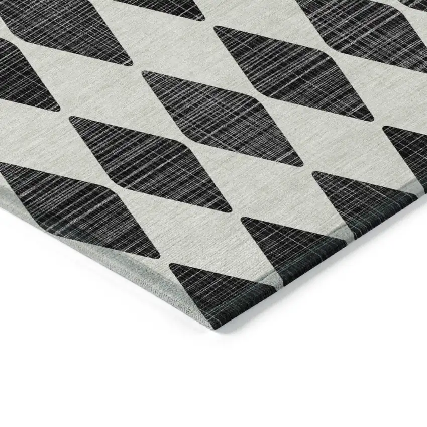 This 9-foot x 12-foot black geometric washable non skid indoor outdoor area rug, is a great way to add warmth to a room. This rectangle shaped rug features a geometric design that will work well both indoors or out. A classic shape marries with good looking design for your living room, hall, bedroom, porch, patio, or poolside. The coloration of this rug infuses an updated and modern vibe into your space. Ideal for outdoor spaces or high traffic areas with kids and pets, this rug is made from heavy duty polyester that is stain resistant to help repel water, dirt, and stains. Versatile in use, durable, and easy to maintain, this rug is an ideal solution to add a decorative and inviting touch to your indoor or outdoor space. 108-inch h x 144-inch w x 0.19-inch d
